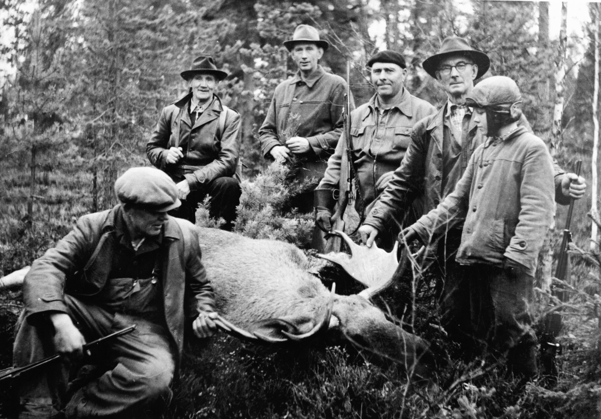 Ett jaktlag, med sin trofé, en älg.