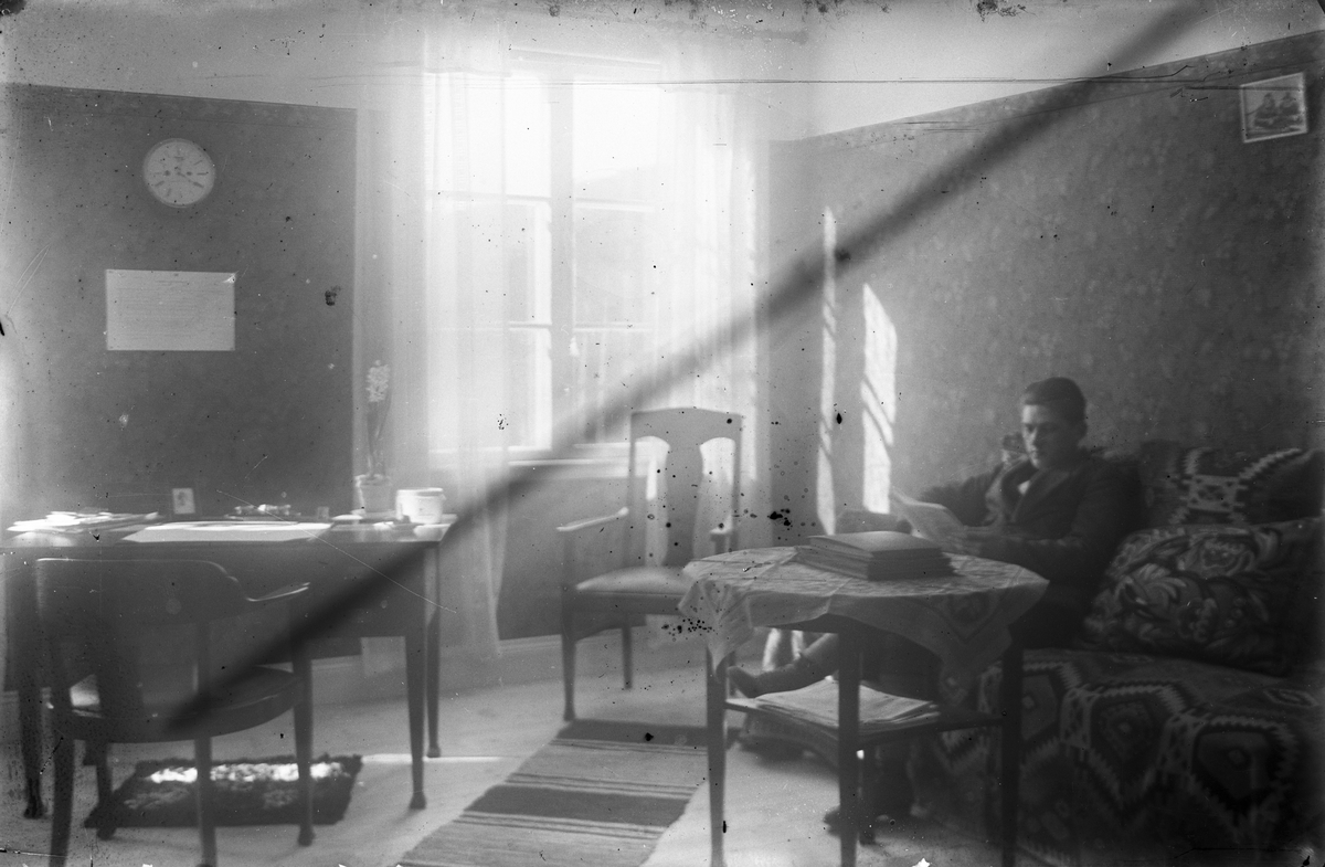 Man läser, rumsinteriör.