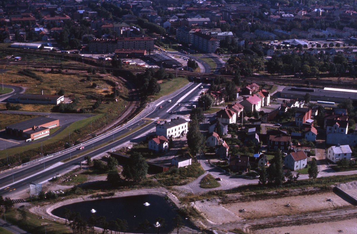 Flygbild över Gävle, norra infarten, Norra Kungsvägen.
