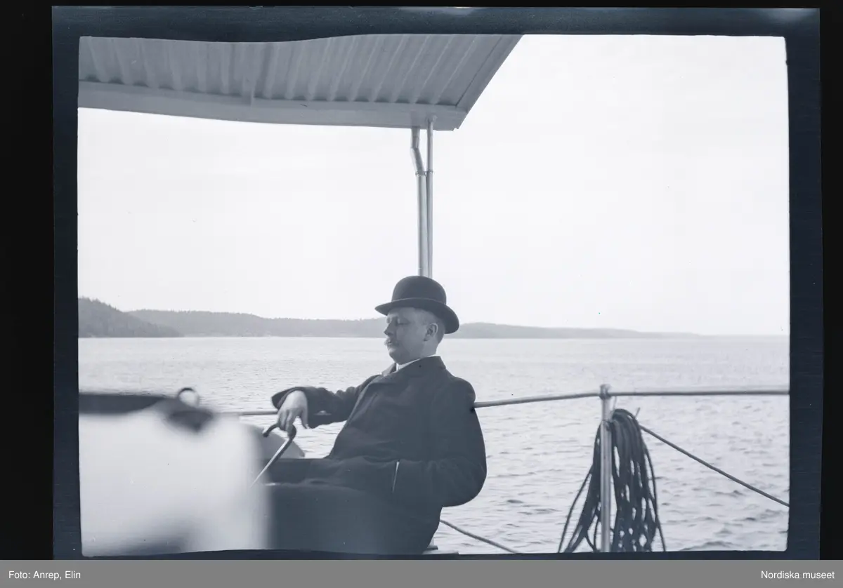 Leonarth Morthensen sitter och slumrar på en båt.
