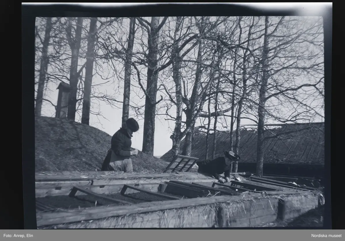 Ett par kvinnor anlägger odlingsbäddar.