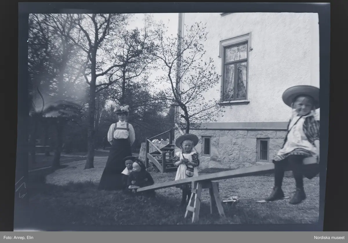 Barnen gungar gungbräda utanför familjen Morthensens villa Solveden, Djursholm.