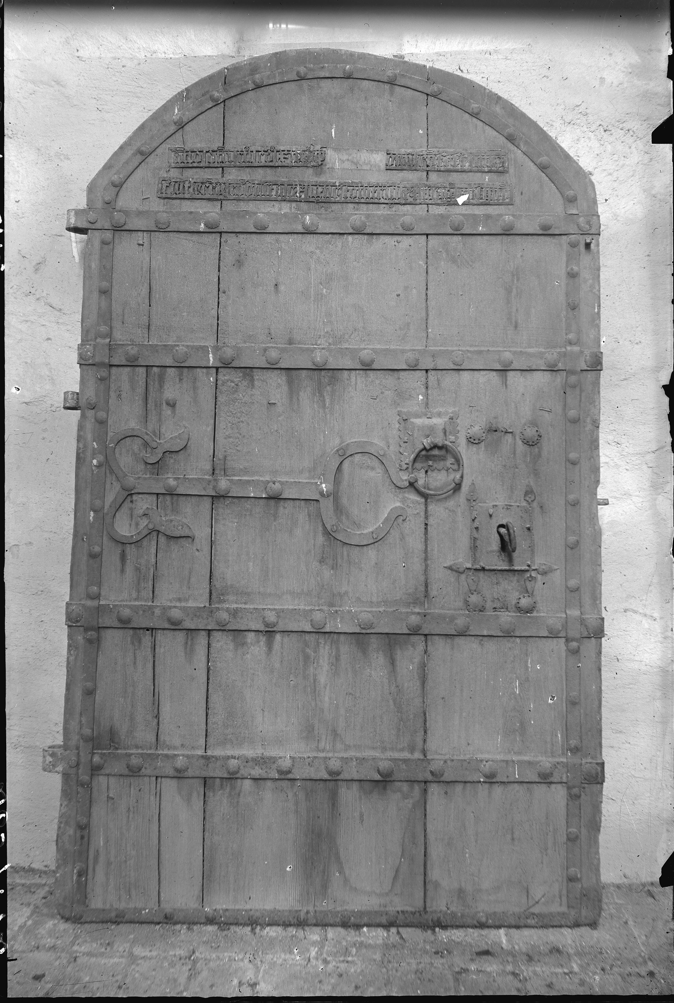 Kyrkdörr av trä med järnbeslag, 1400-tal.
