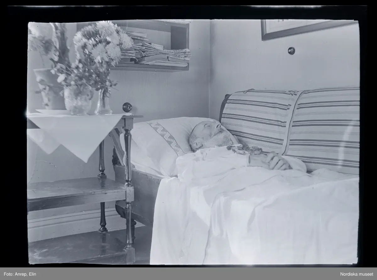 Post mortem, traditionen att avporträttera personer som nyligen avlidit, för att ha porträttet framme i hemmet, finns i konsten från 1600-talet och var en vanlig praktik i fotografiets barndom på 1800-talet och fram till mitten av 1900-talet. Döden var en del av livet och det var vanligt att den avlidne låg i hemmet på lit-de-parade, dvs i sin säng eller i en öppen kista där anhöriga och vänner kunde komma förbi för ett sista farväl. Innan handkameran blev vanlig togs porträtten ofta av kringresande fotografer. Genom kläder, blomsterdekorationer och olika symbolladdade element tillfördes genren en egen estetik. Porträtten fyller en tydlig minnesfunktion.