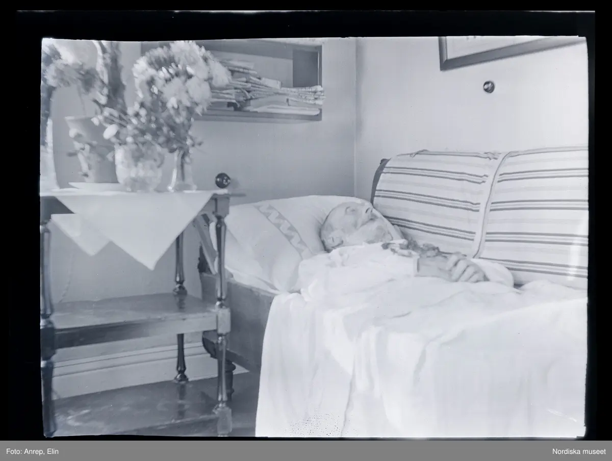 Post mortem, traditionen att avporträttera personer som nyligen avlidit, för att ha porträttet framme i hemmet, finns i konsten från 1600-talet och var en vanlig praktik i fotografiets barndom på 1800-talet och fram till mitten av 1900-talet. Döden var en del av livet och det var vanligt att den avlidne låg i hemmet på lit-de-parade, dvs i sin säng eller i en öppen kista där anhöriga och vänner kunde komma förbi för ett sista farväl. Innan handkameran blev vanlig togs porträtten ofta av kringresande fotografer. Genom kläder, blomster-dekorationer och olika symbolladdade element tillfördes genren en egen estetik. Porträtten fyller en tydlig minnesfunktion.