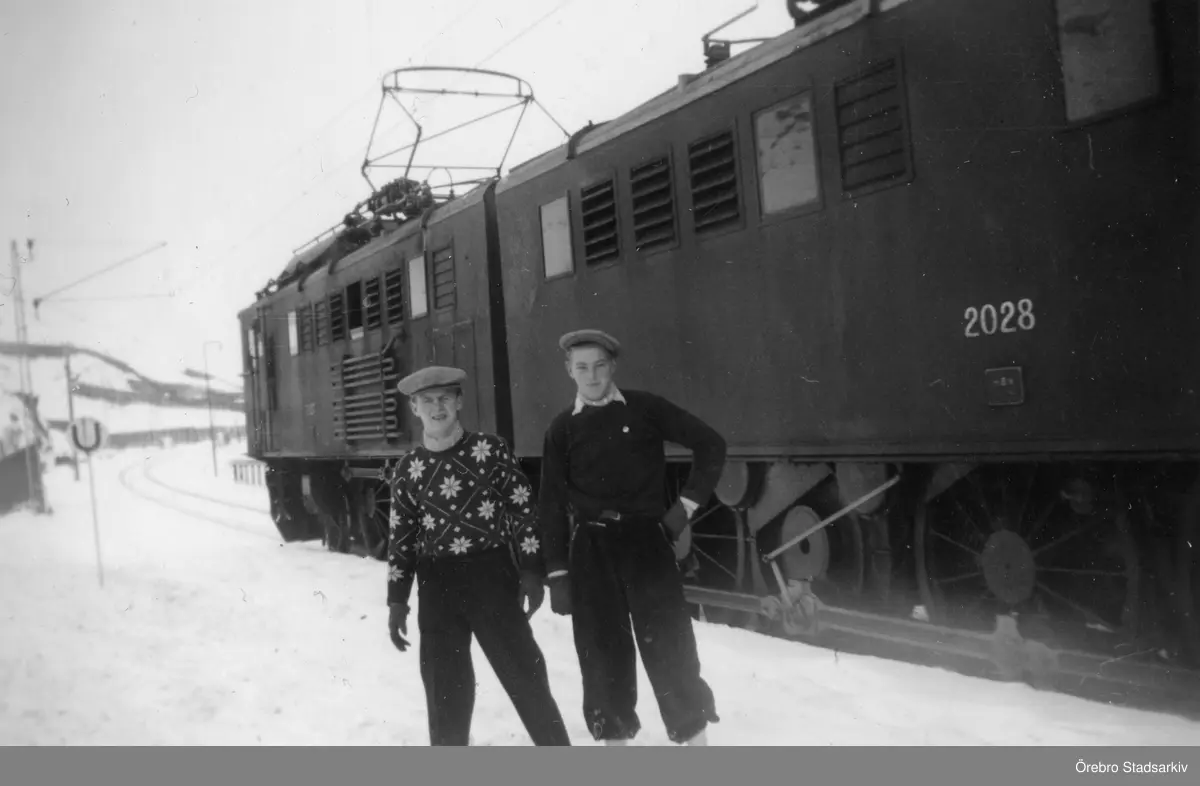 Två män framför ett tåg