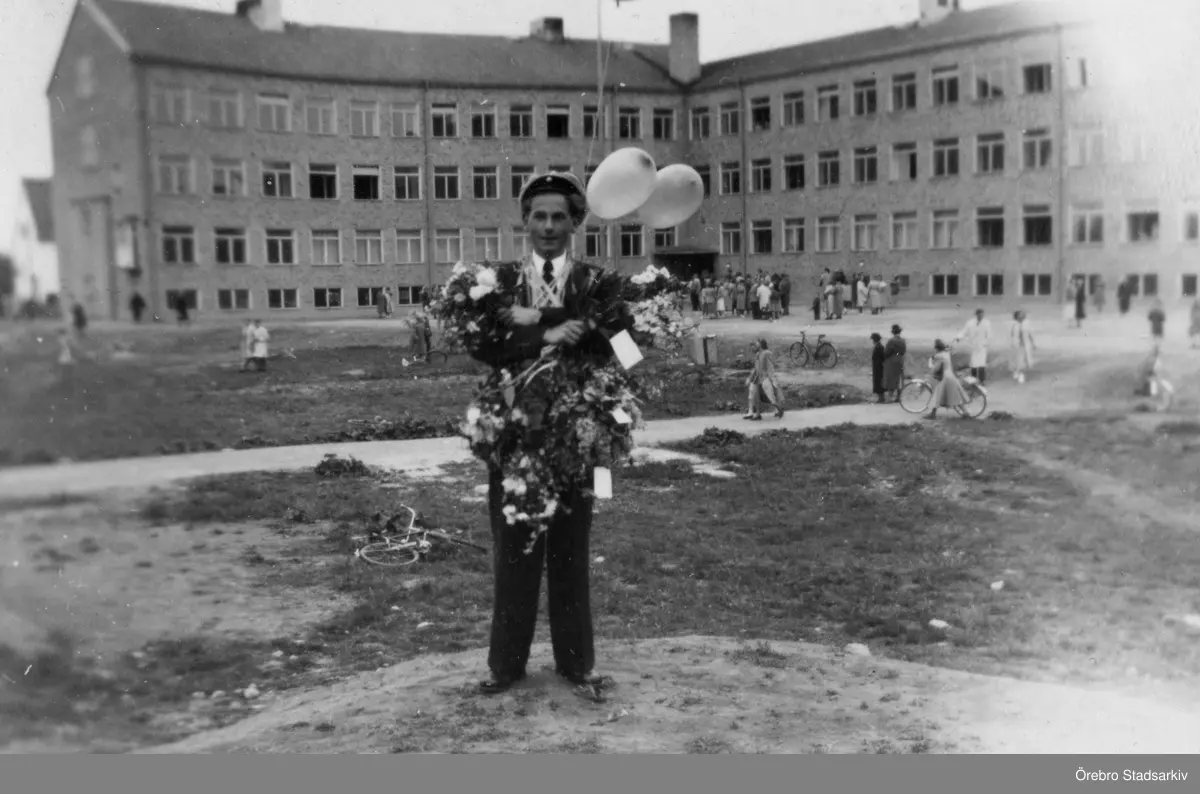 Student framför Centrala verkstadsskolan i Örebro