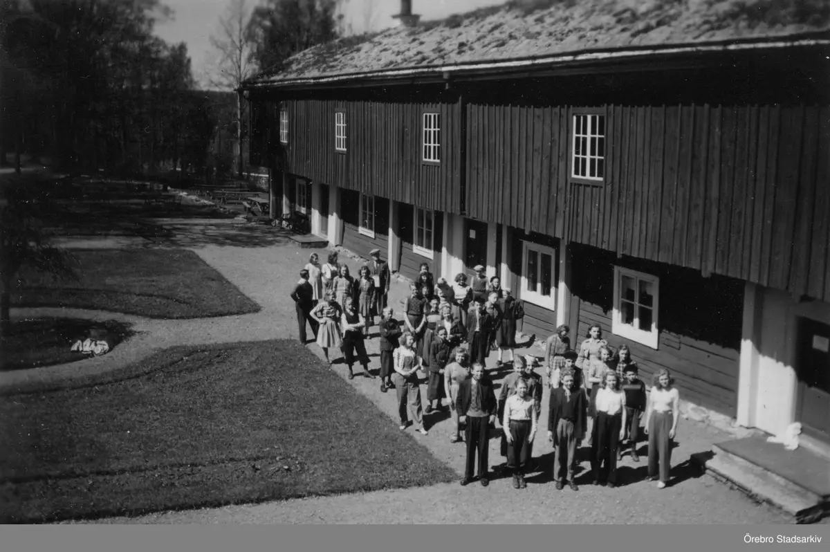 Skolklass på resa till Siggebohyttans bergsmansgård, 1945