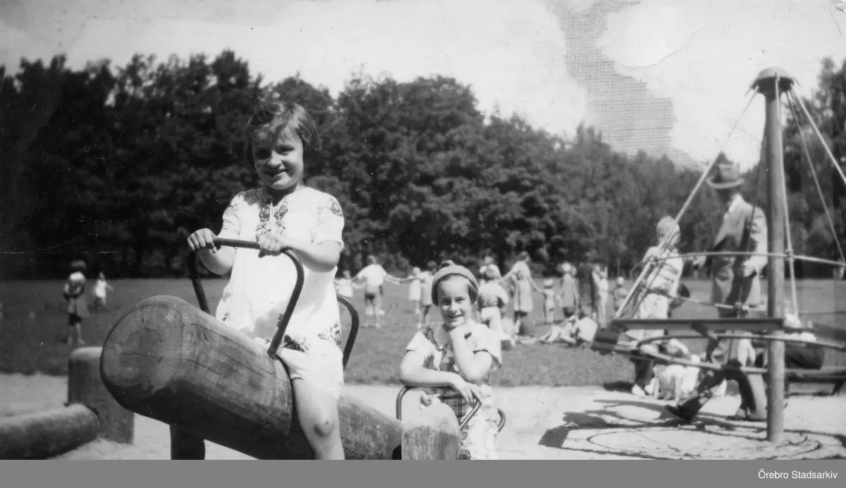 Barn på gungbräda i Stadsparken i Örebro, 1939