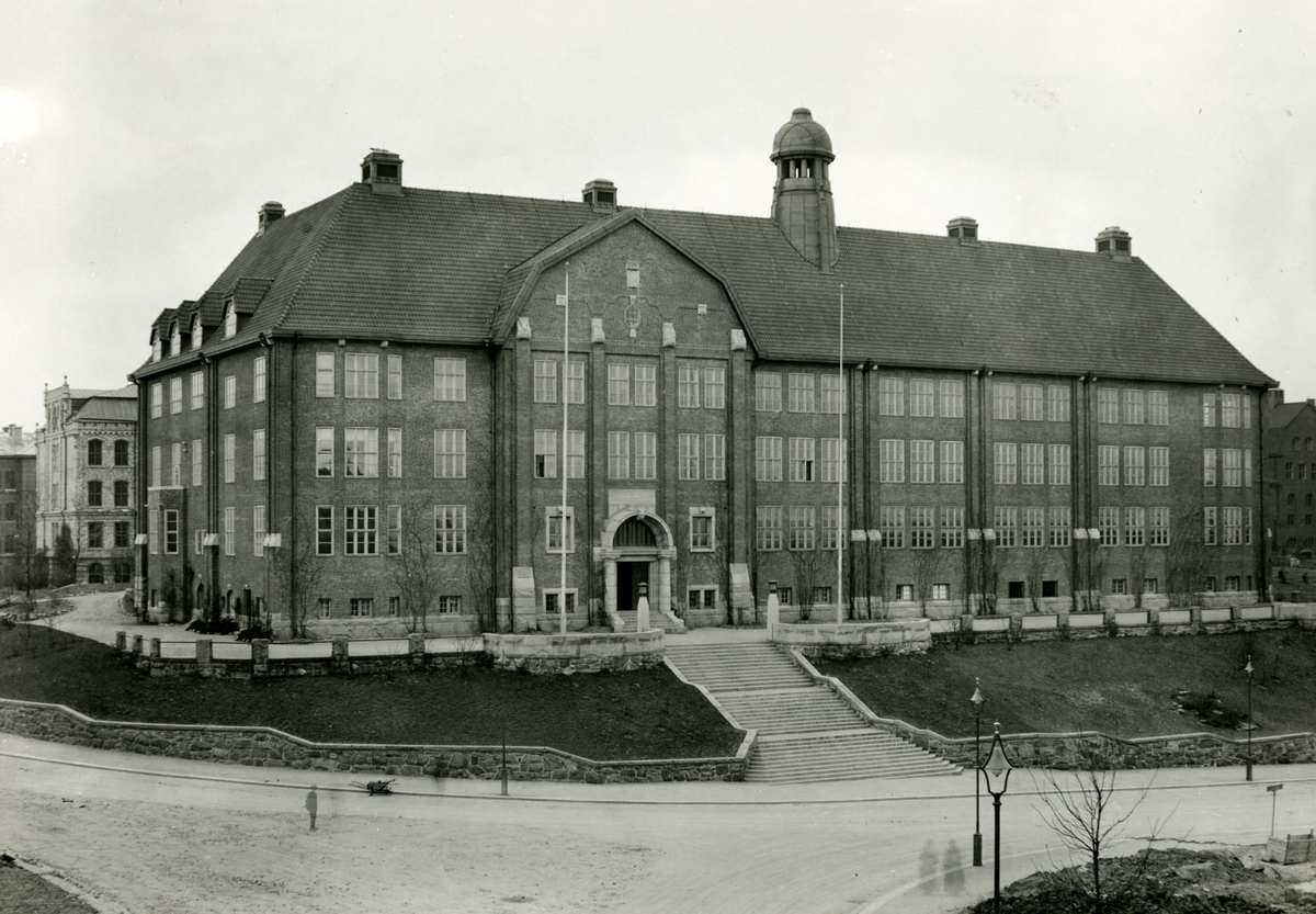 Byggnaden ritades av Charles Lindholm och var avsedd för 300 elever
