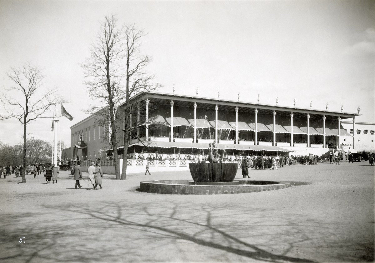 Titel: Jubileumsutställningen i Göteborg 1923 Huvudrestauranten och Carl Milles fontän Historiska utställningen Minnesfältet