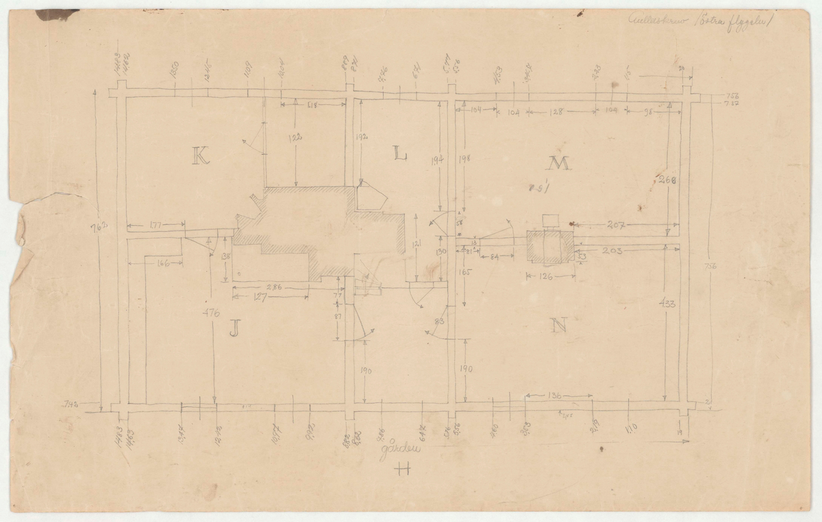 Titel: Skogaholms herrgård. Köksflygeln. Planritning. Gullaskruv/östra flygeln.