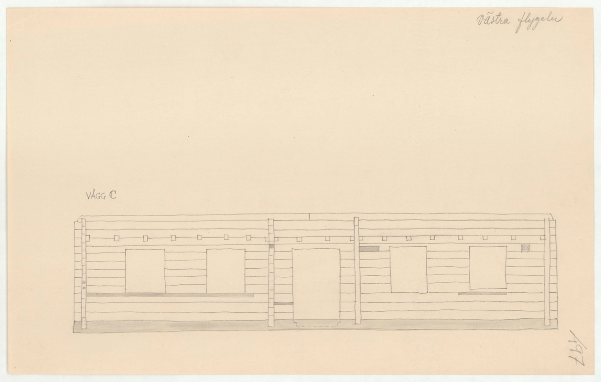 Titel: Skogaholms herrgård. Biblioteksflygeln. Detaljritning. Västra flygeln. VÄGG C.