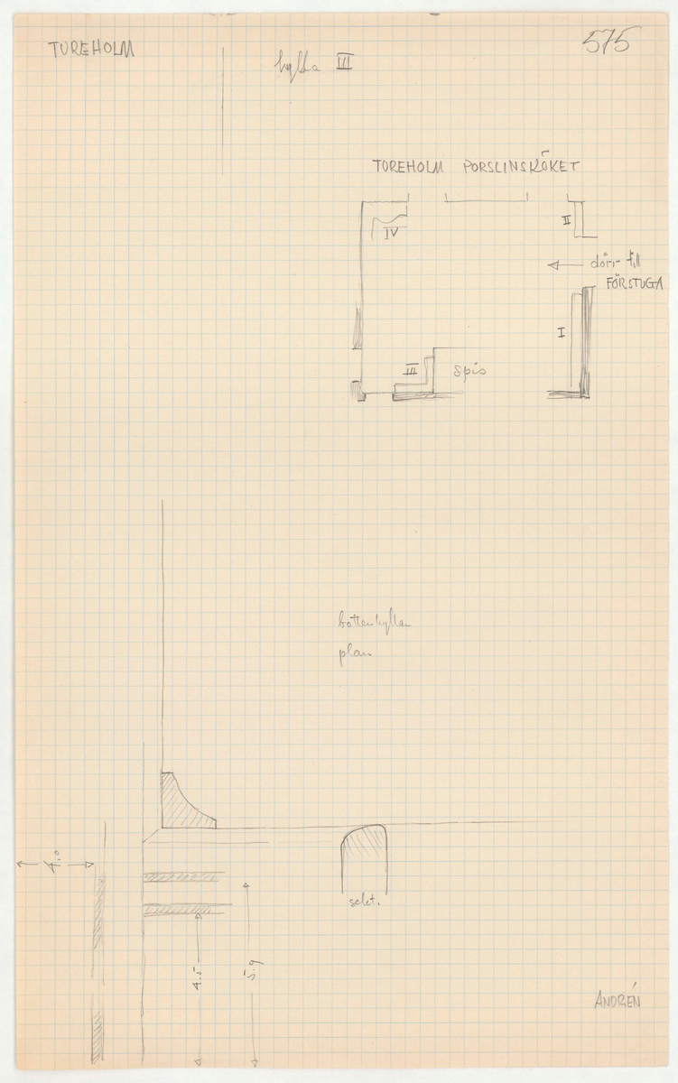 Titel: Skogaholms herrgård. Biblioteksflygeln. Detaljritning. TUREHOLM PORSLINSKÖKET.