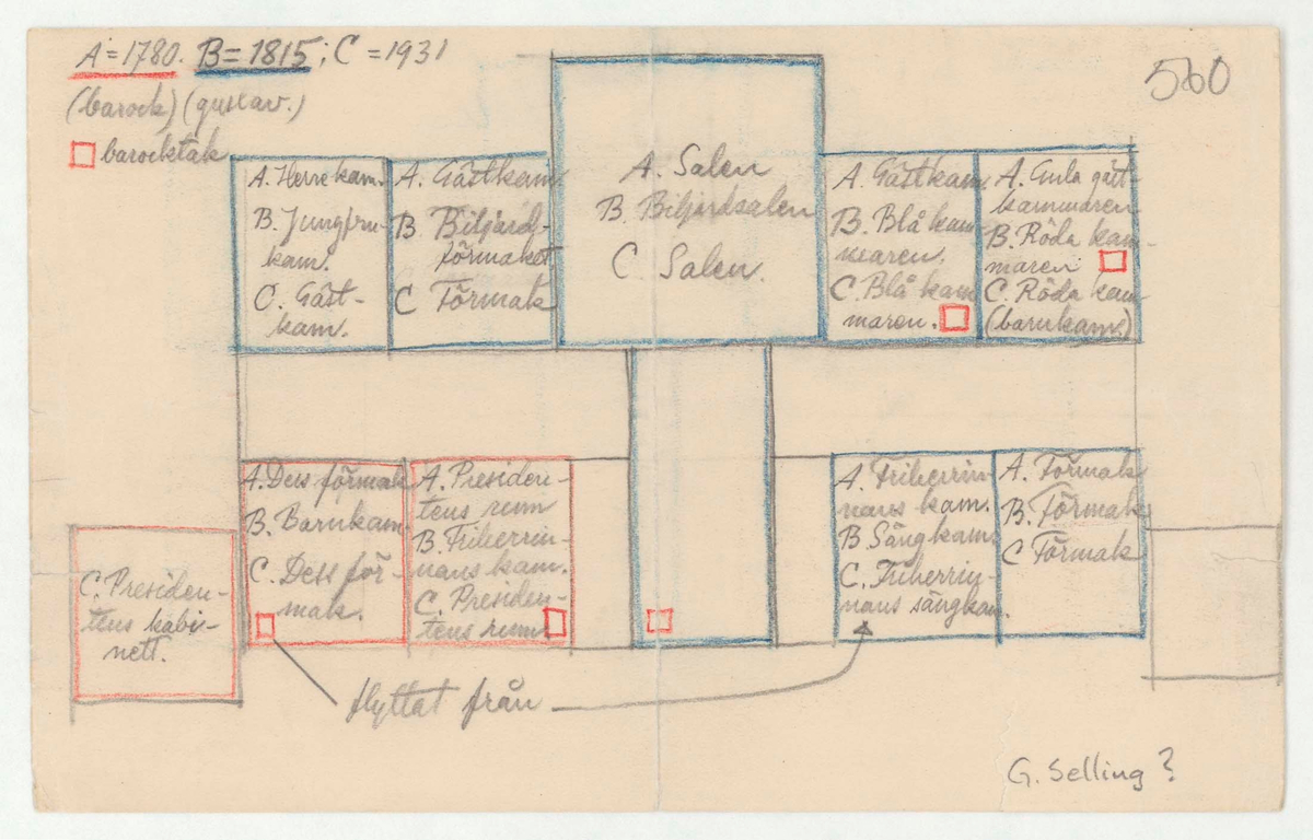 Titel: Skogaholms herrgård. Huvudbyggnaden. Planritning.