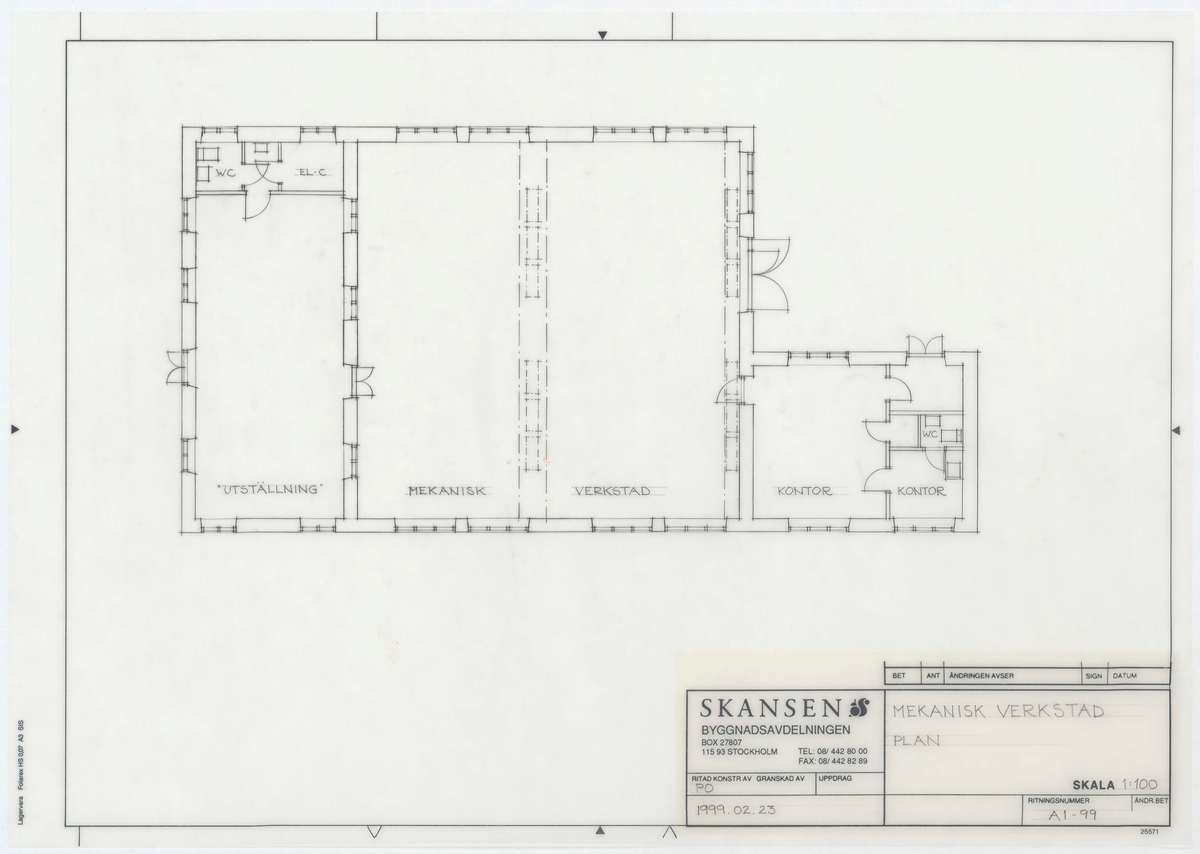 Titel: Mekaniska verkstaden. Planritning.