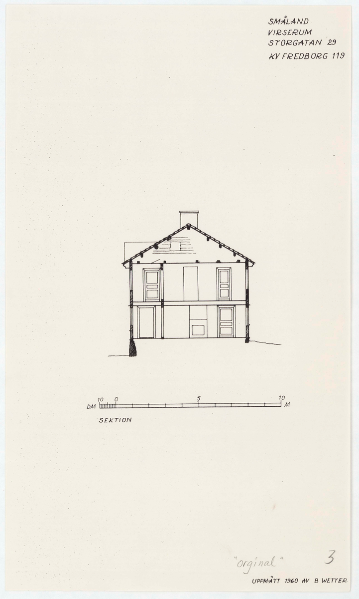 Titel: Posthuset. Sektionsritning. Uppmätningsritning. Virserum, Småland.