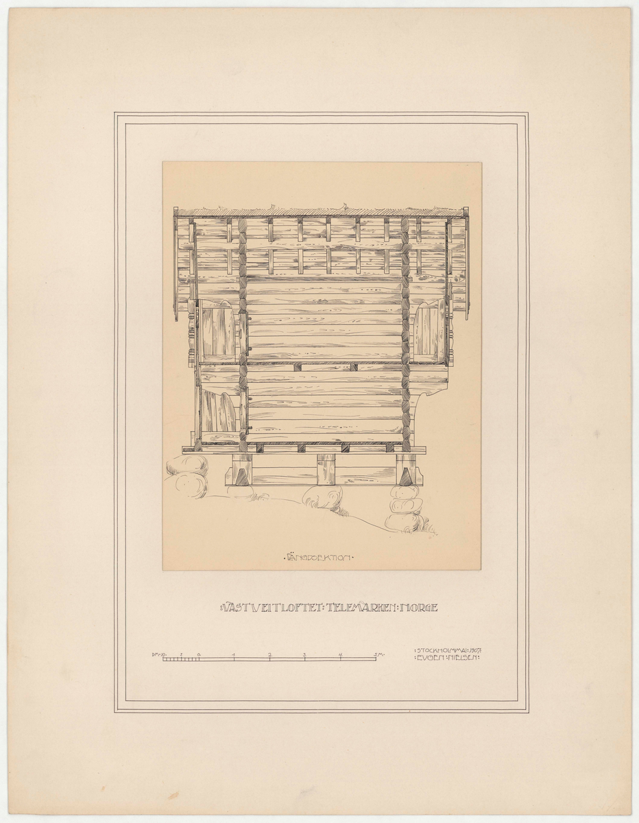 Titel: Vastveitloftet. Fasadritning. Längdsektion.