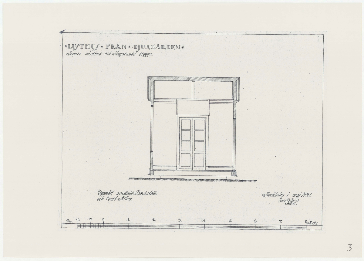 Titel: Lusthuset från Djurgården. Fasadritning.