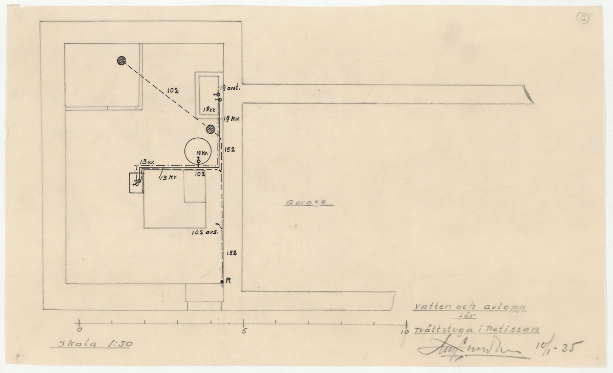 Titel: Apoteket/Petissan. Planritning. Vatten och avlopp för tvättstugq i Petissan.