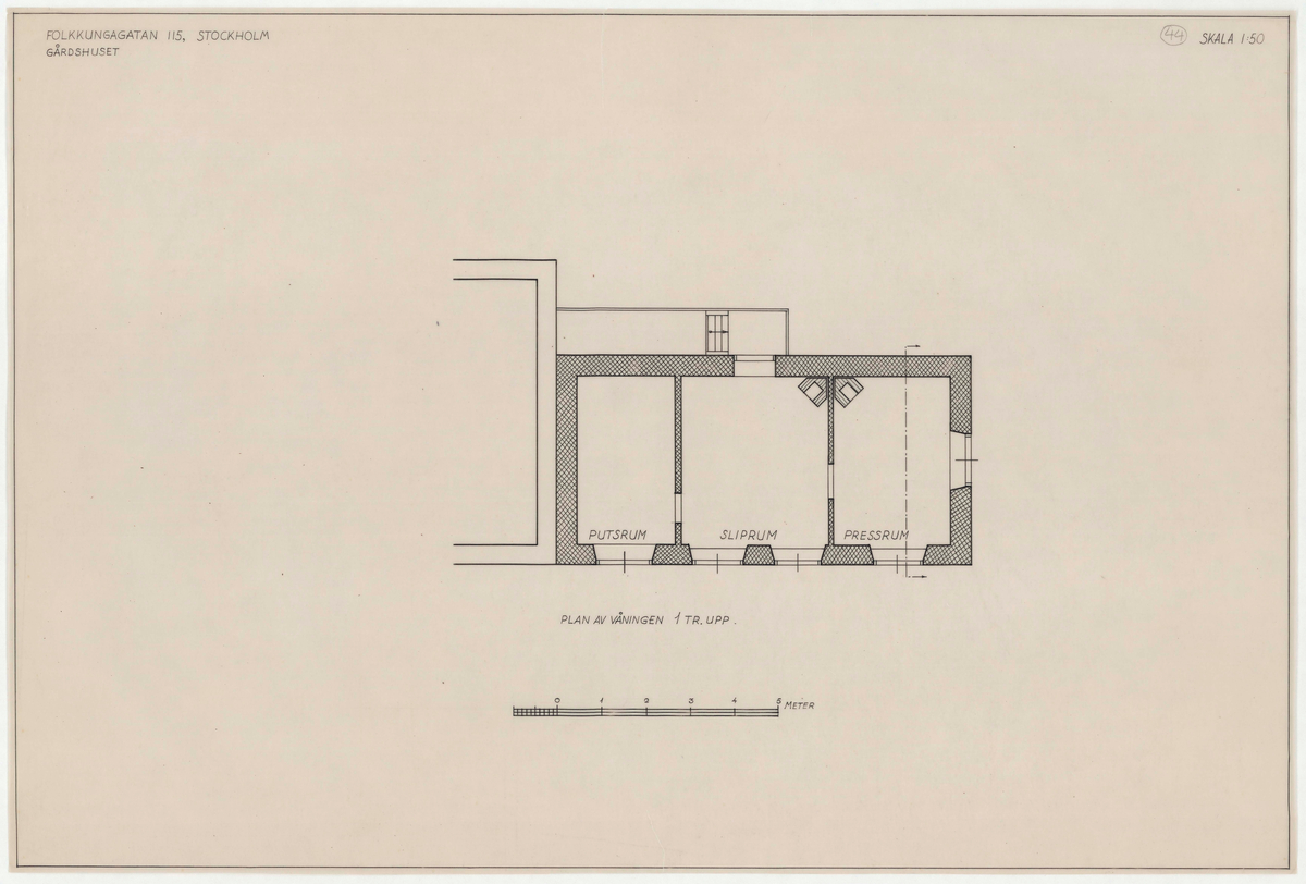 Titel: Guldsmedshuset. Planritning. Gårdshuset. Plan av våningen 1 tr upp.