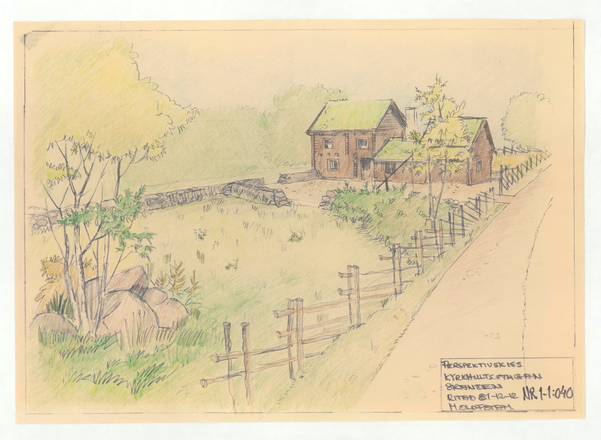 Titel: Kyrkhultsstugan. Teckning. Färglagd.