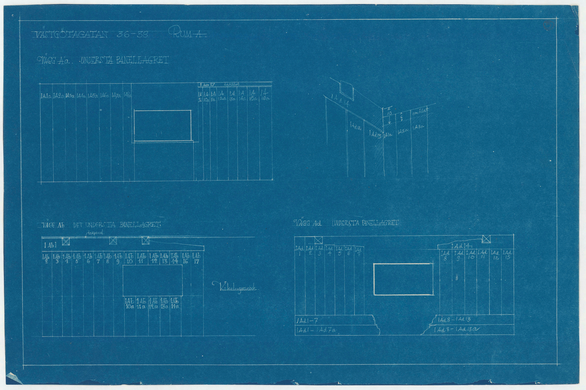 Titel: Skomakarverkstaden. Fasadritning. Understa panellagret. Blåkopia.