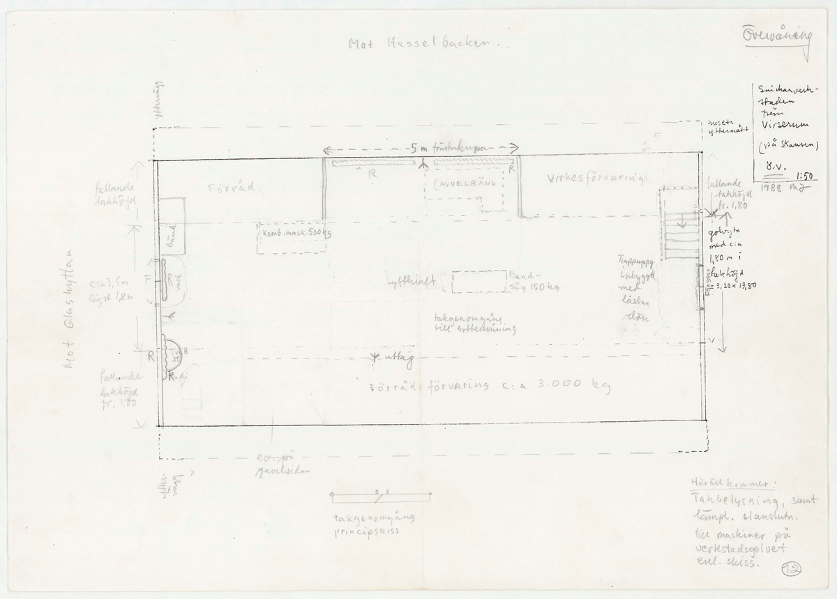 Titel: Snickerifabriken. Planritning. Övervåning.