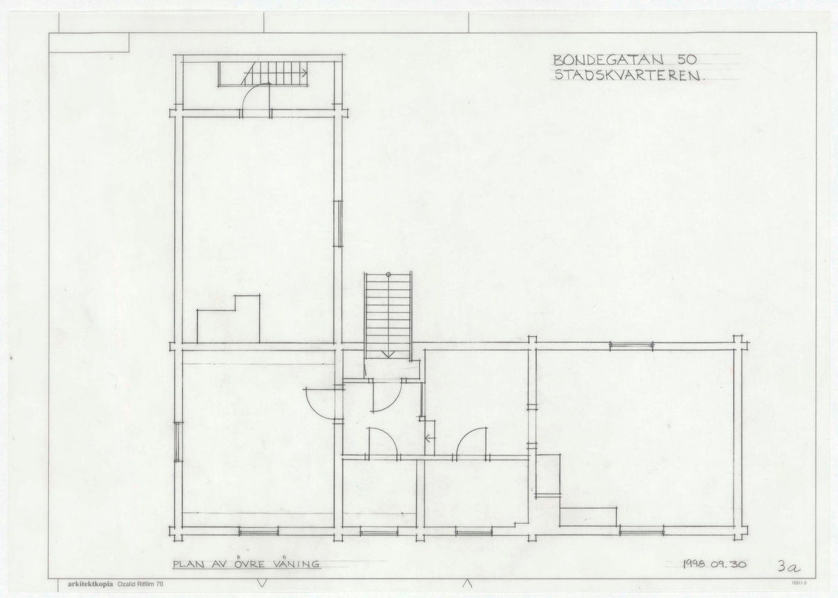 Titel: Kryddkramhandlarens hus. Planritning. Plan av övre våning.