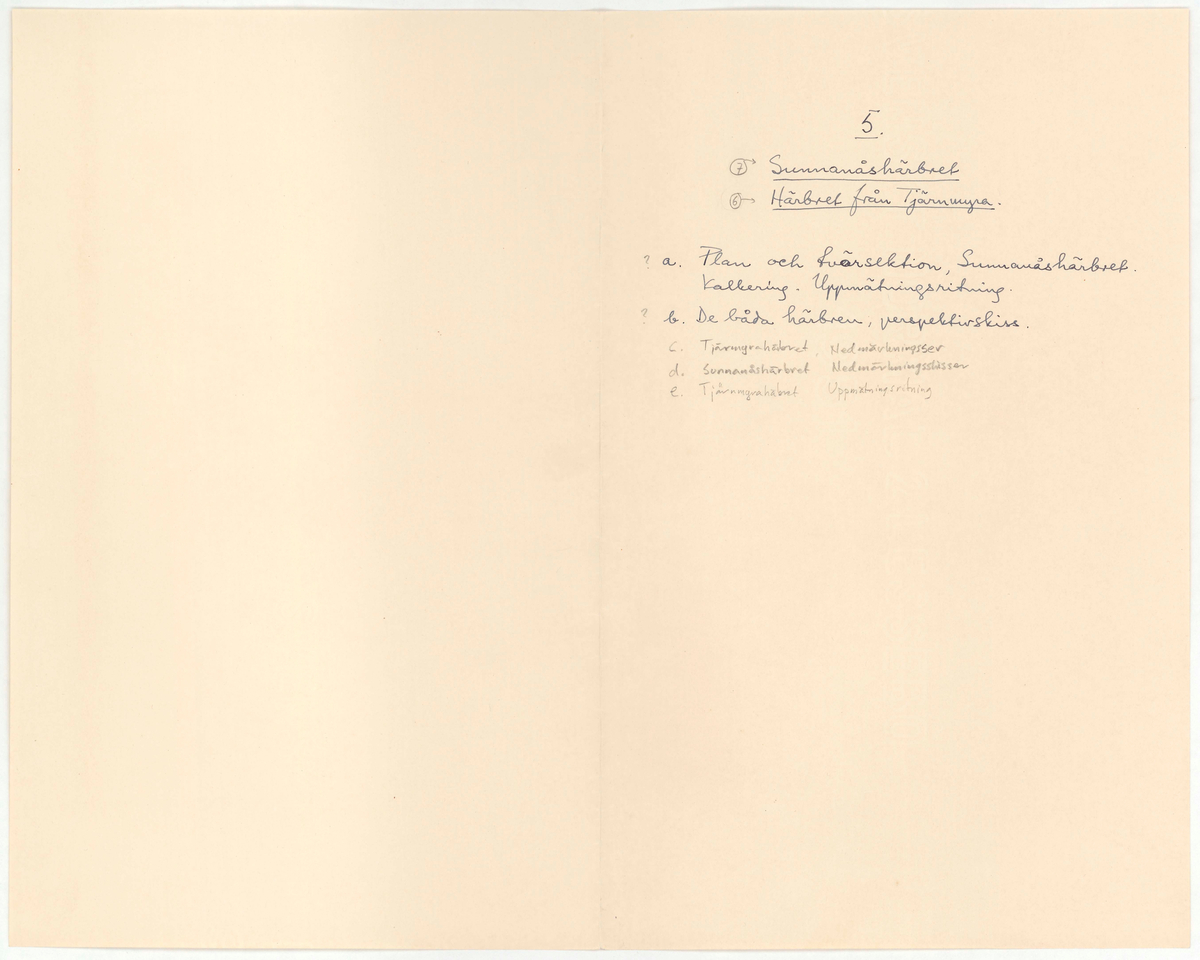 Titel: Delsbogården. Lista. Komplettering till ritningar. Sunnanåshärbret.