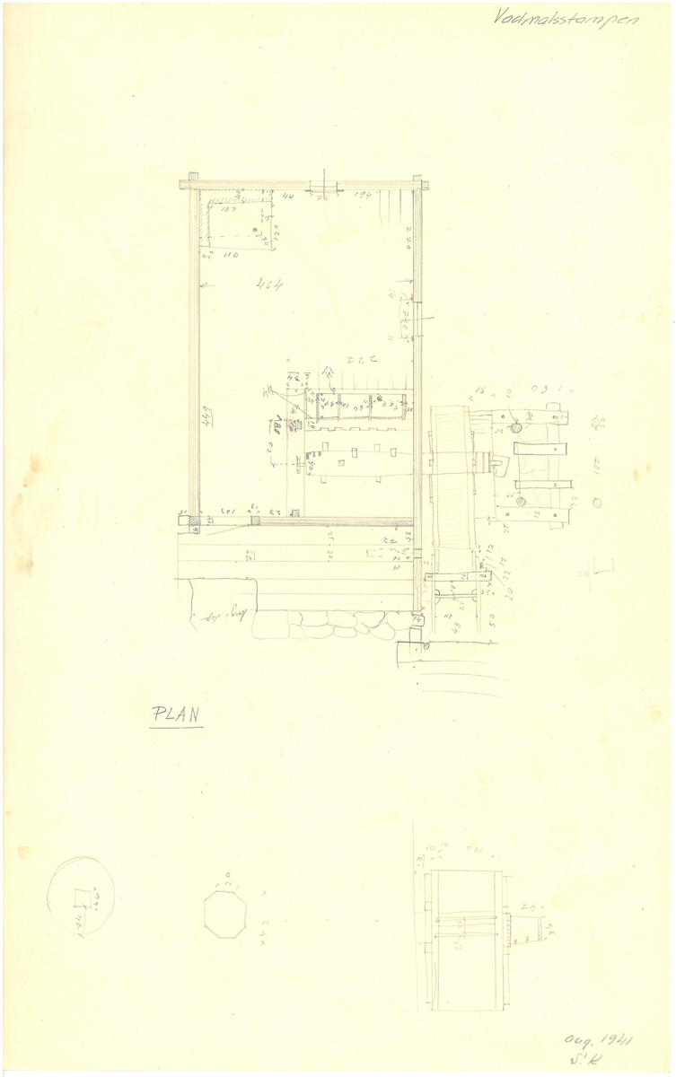 Titel: Vadmalsstampen. Uppmätningsritning. Planritning.