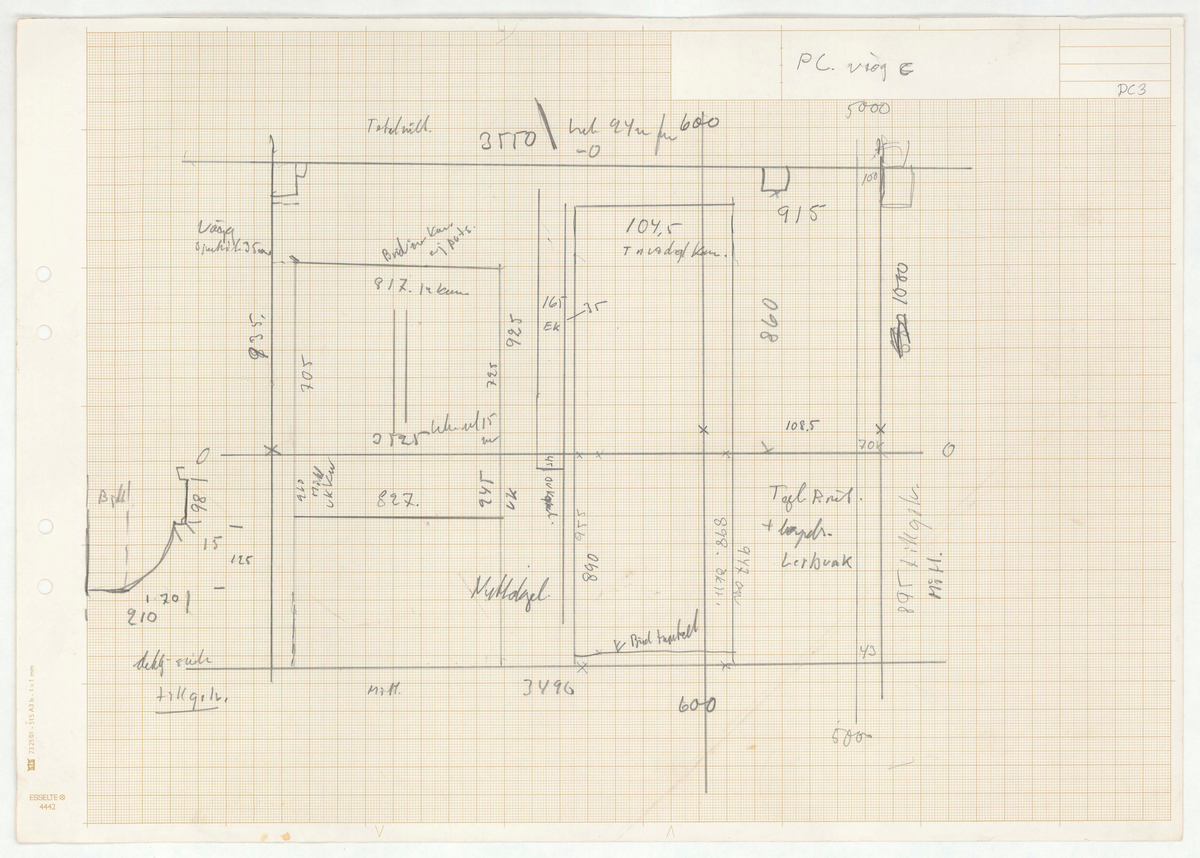 Titel: Skånegården. Bostadshuset. Detaljritning PC vägg c.
