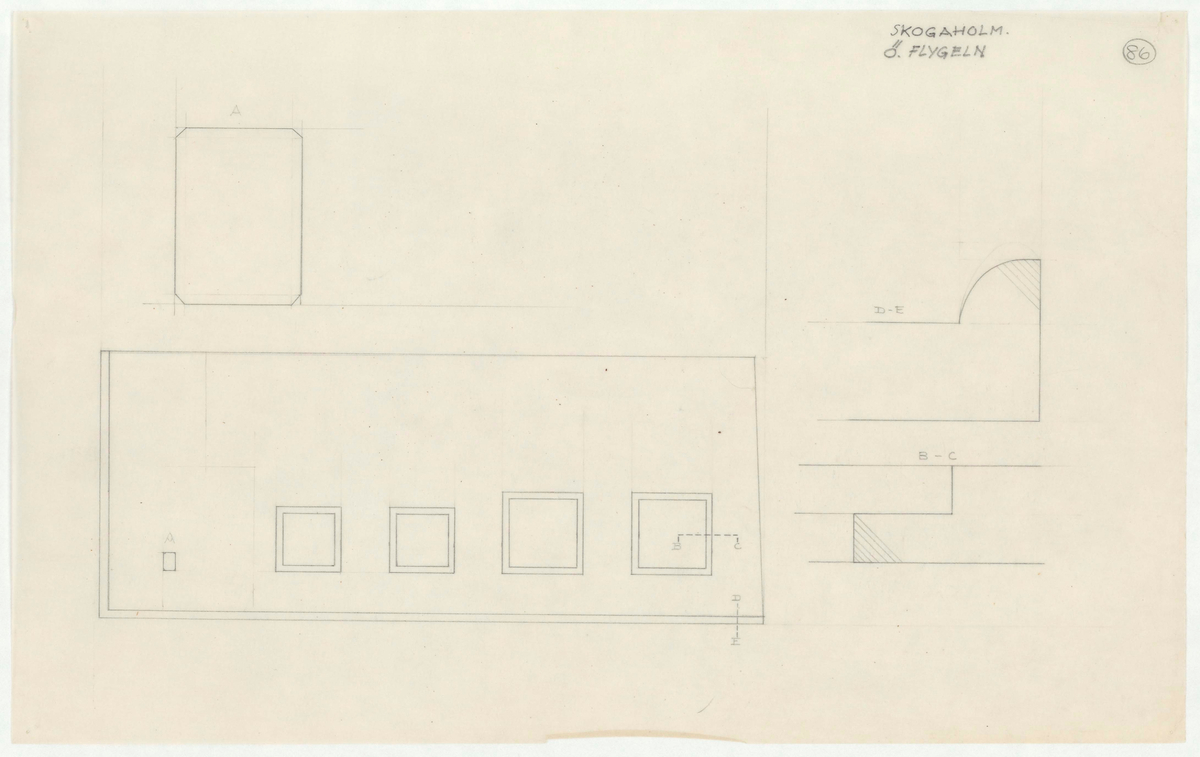 Titel: Skogaholms herrgård. Köksflygeln. Detaljritning. ÖSTRA FLYGELN.