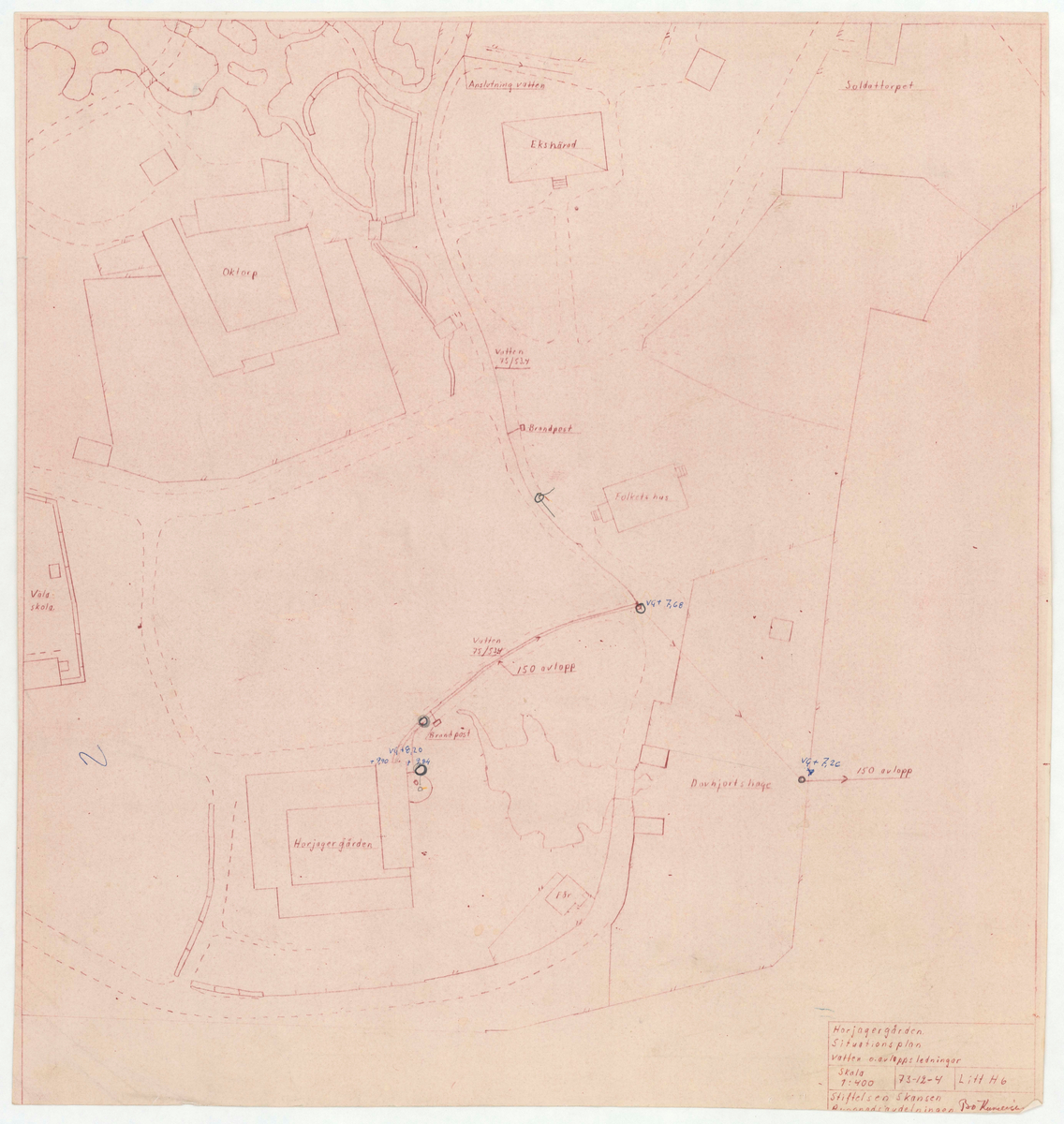 Situationsplan med vatten och avlopp och relation till kringliggande bebyggelse.