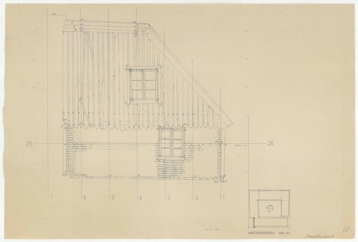 Titel: Skånegården. Bostadshuset. Fasadritning.