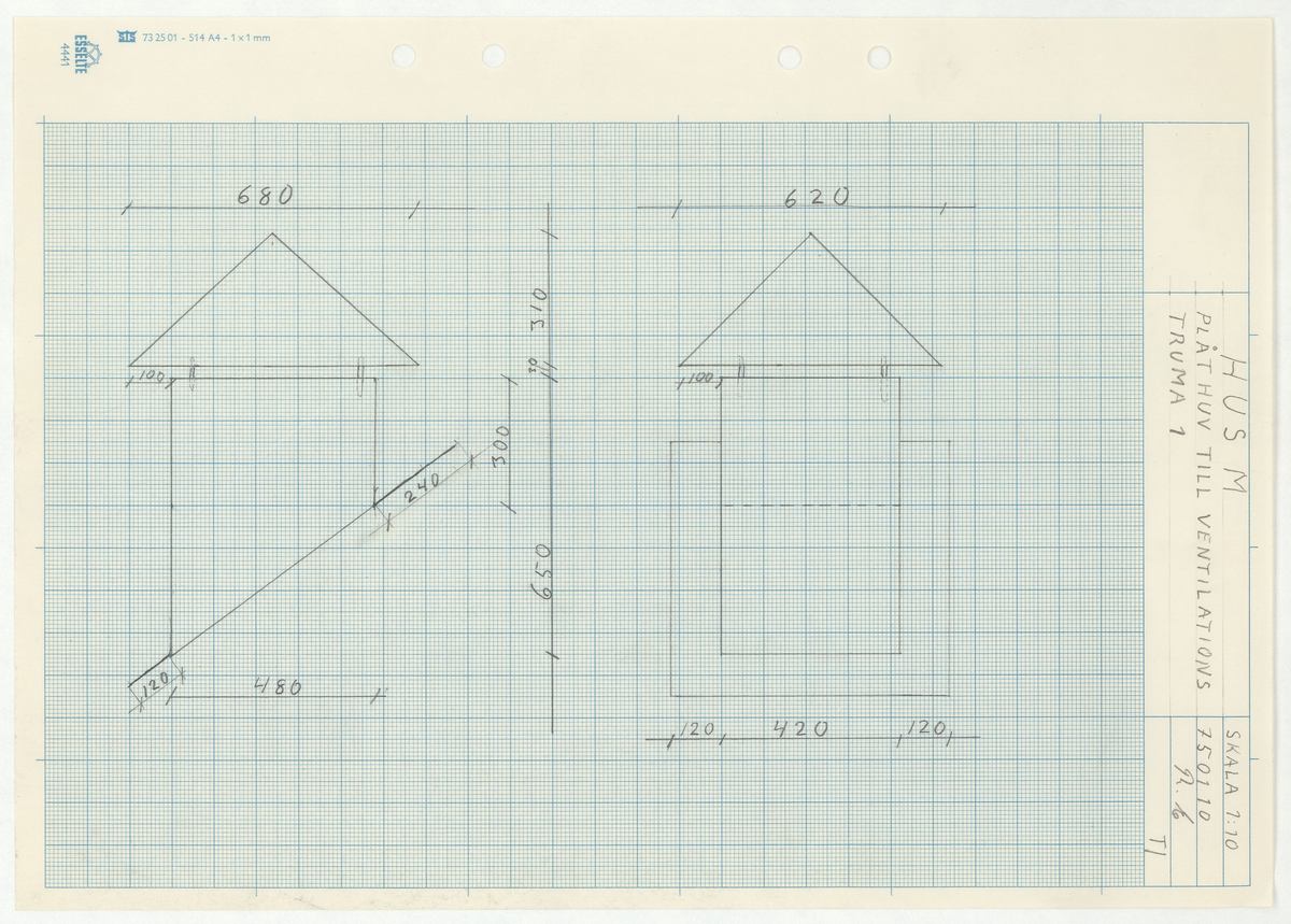 Titel: Skånegården. Stallet. HUS M. PLÅTHUV TILL VENTILATIONSTRUMMA. Skala 1:10