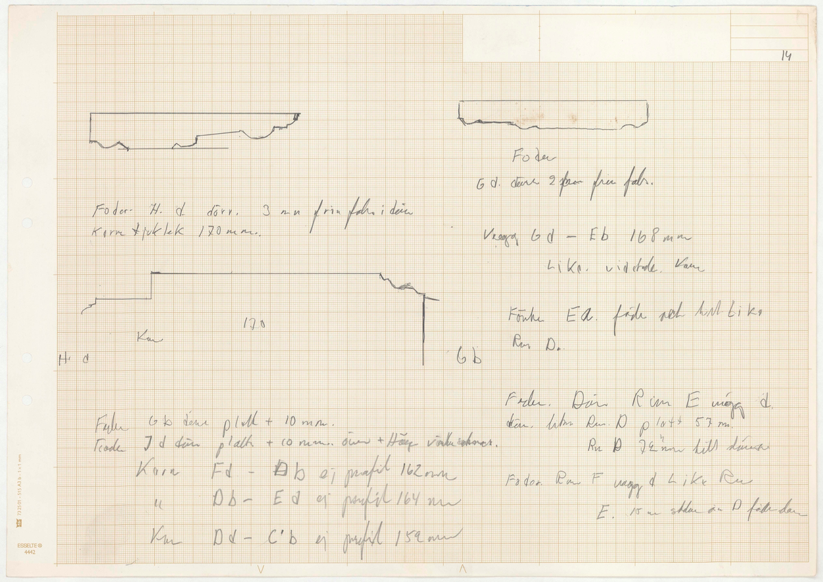 Titel: Skånegården. Bostadshuset. Anteckningar/Detaljritning. Foder