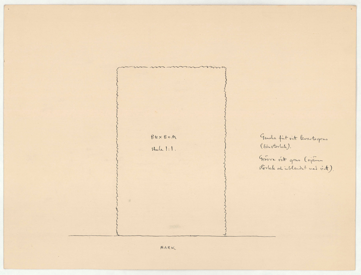 Ganska fint vitt kvartsgrus (bönstorlek). Grövre rött grus (ojämn storlek och inblandat med vitt).