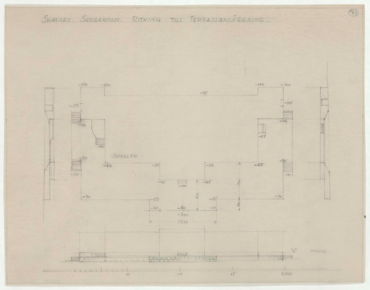 Titel: Skogaholms herrgård. Detaljritning. RITNING TILL TERRASSANLÄGGNING.