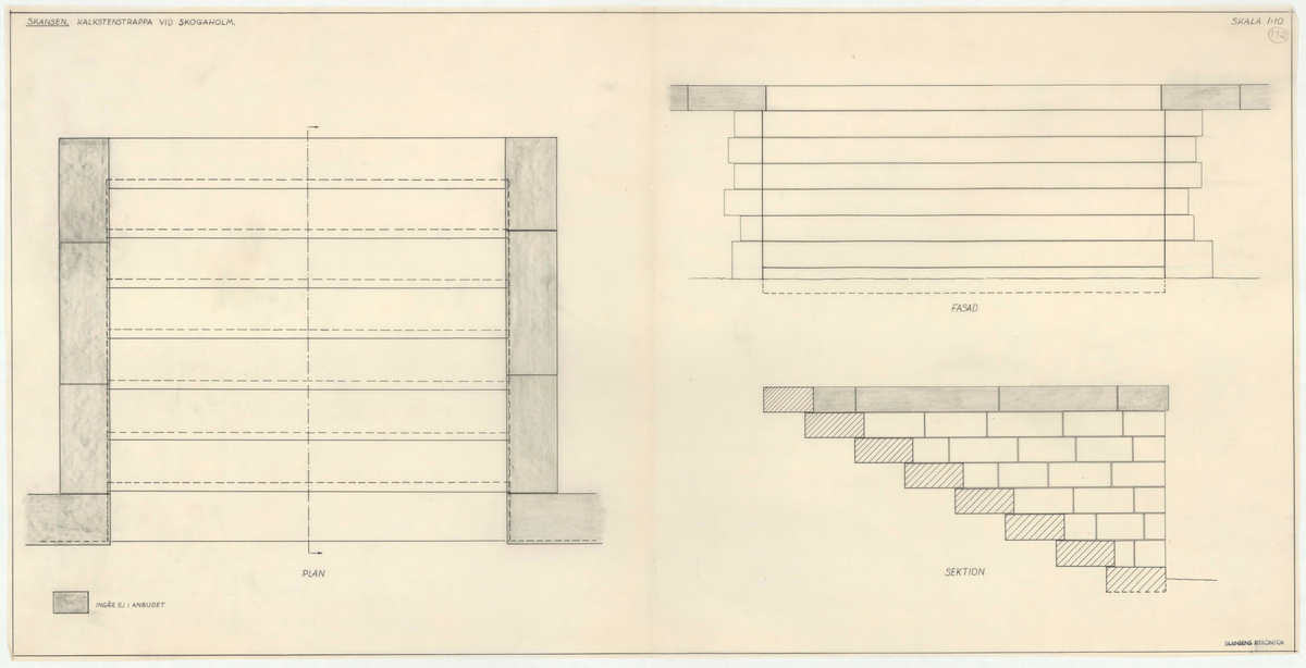 Titel: Skogaholms herrgård. Planritning. Fasadritning. Sektionsritning.