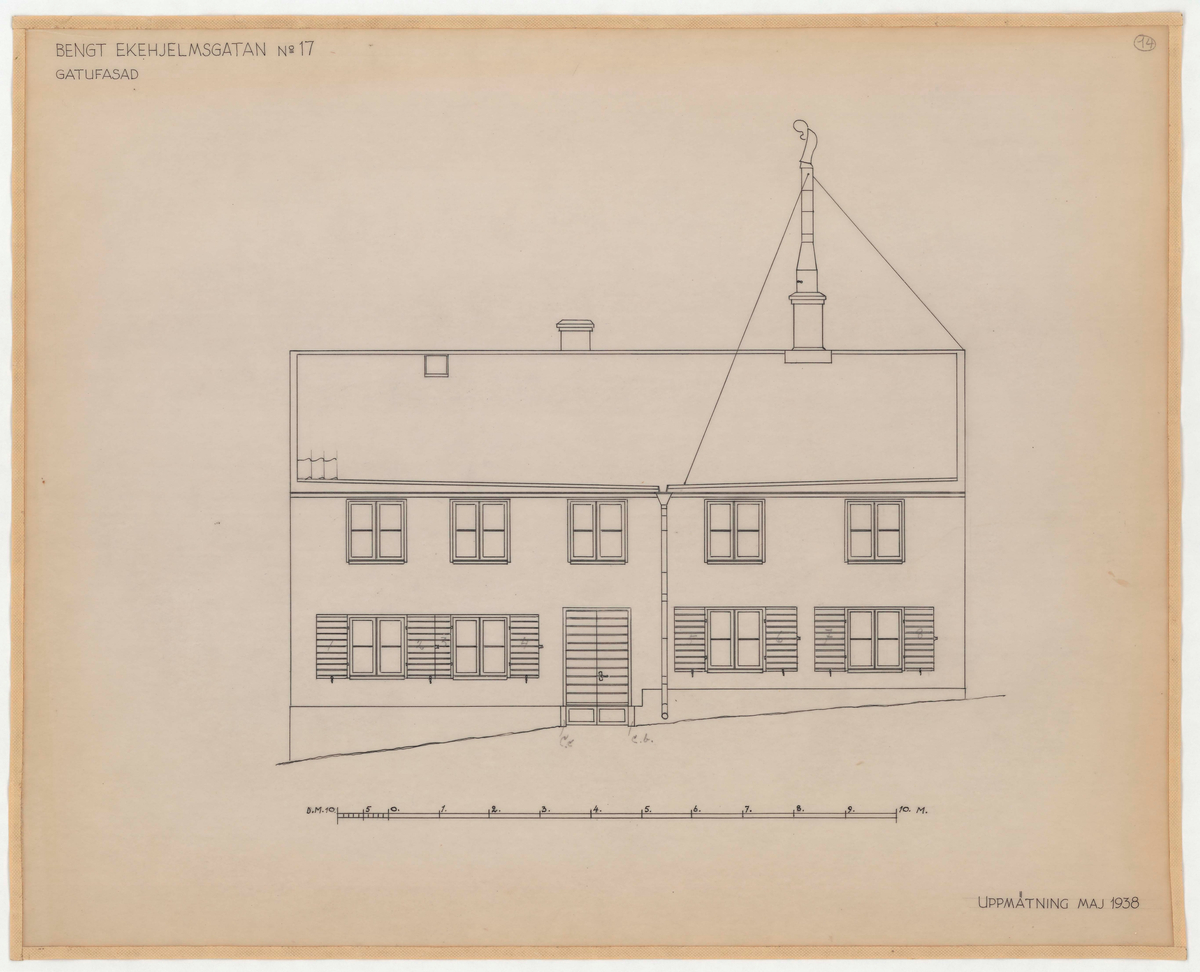 Titel: Guldsmedshuset. Fasadritning. Gatufasad.
