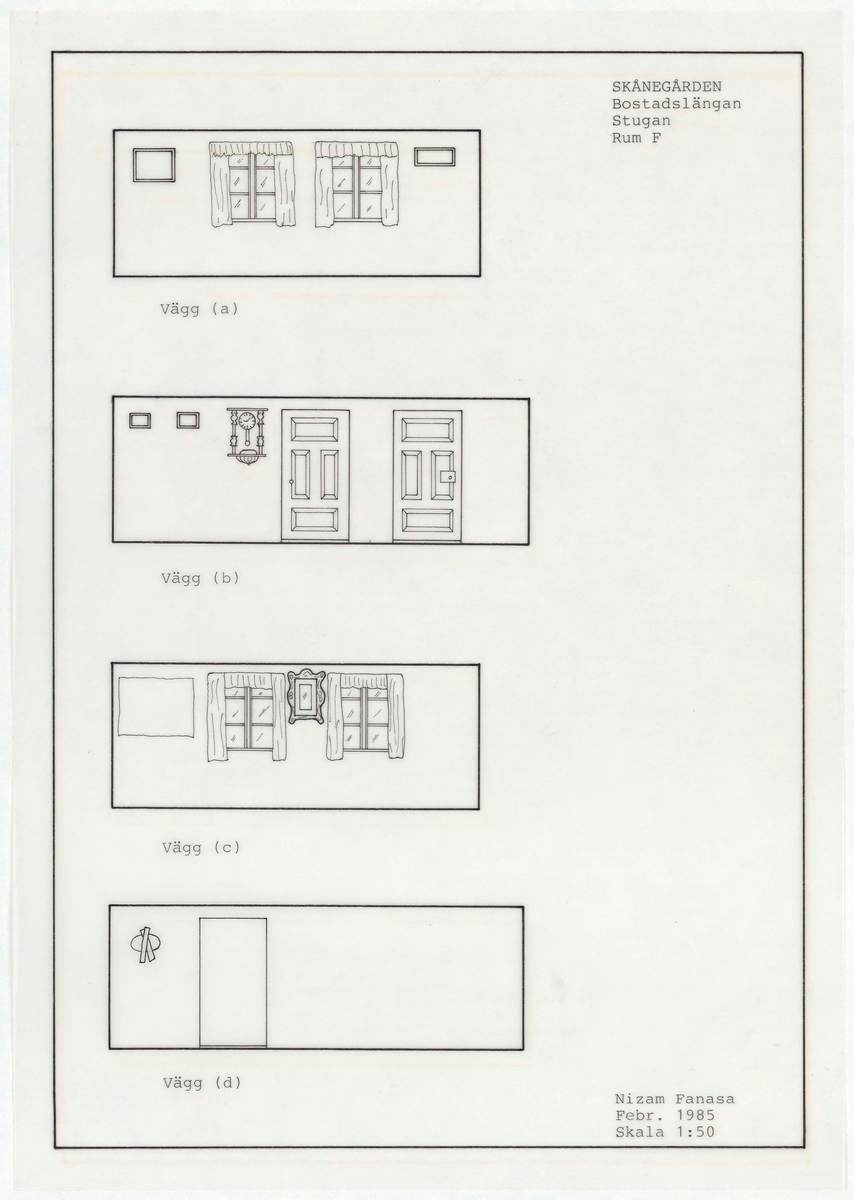Titel: Skånegården. Bostadshuset. Detaljritning. Stugan Rum F.