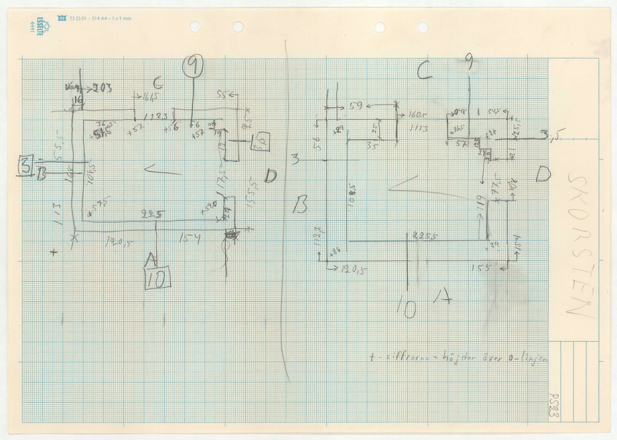 Titel: Skånegården. Bostadshuset. Detaljritning. SKORSTEN Mer text finns.