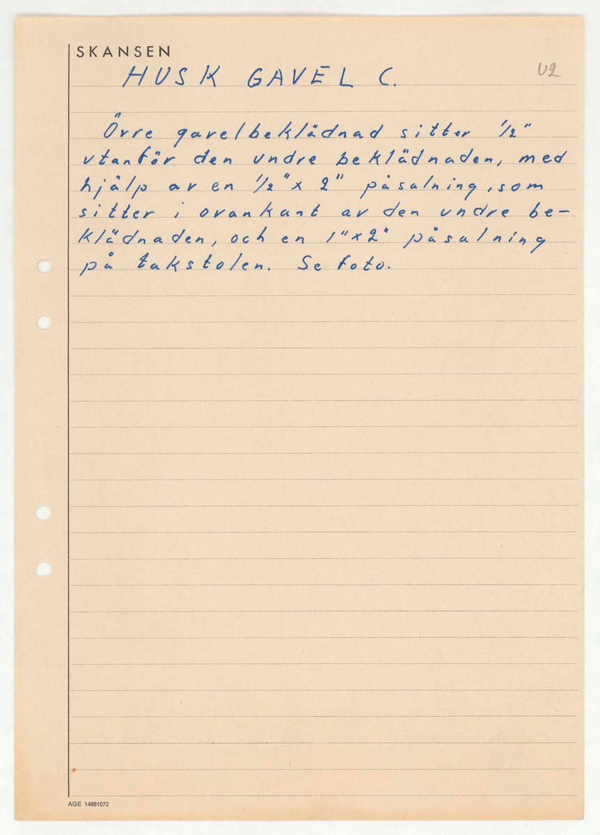 Titel: Skånegården. Västra loglängan. Anteckningar HUS K. GAVEL C.