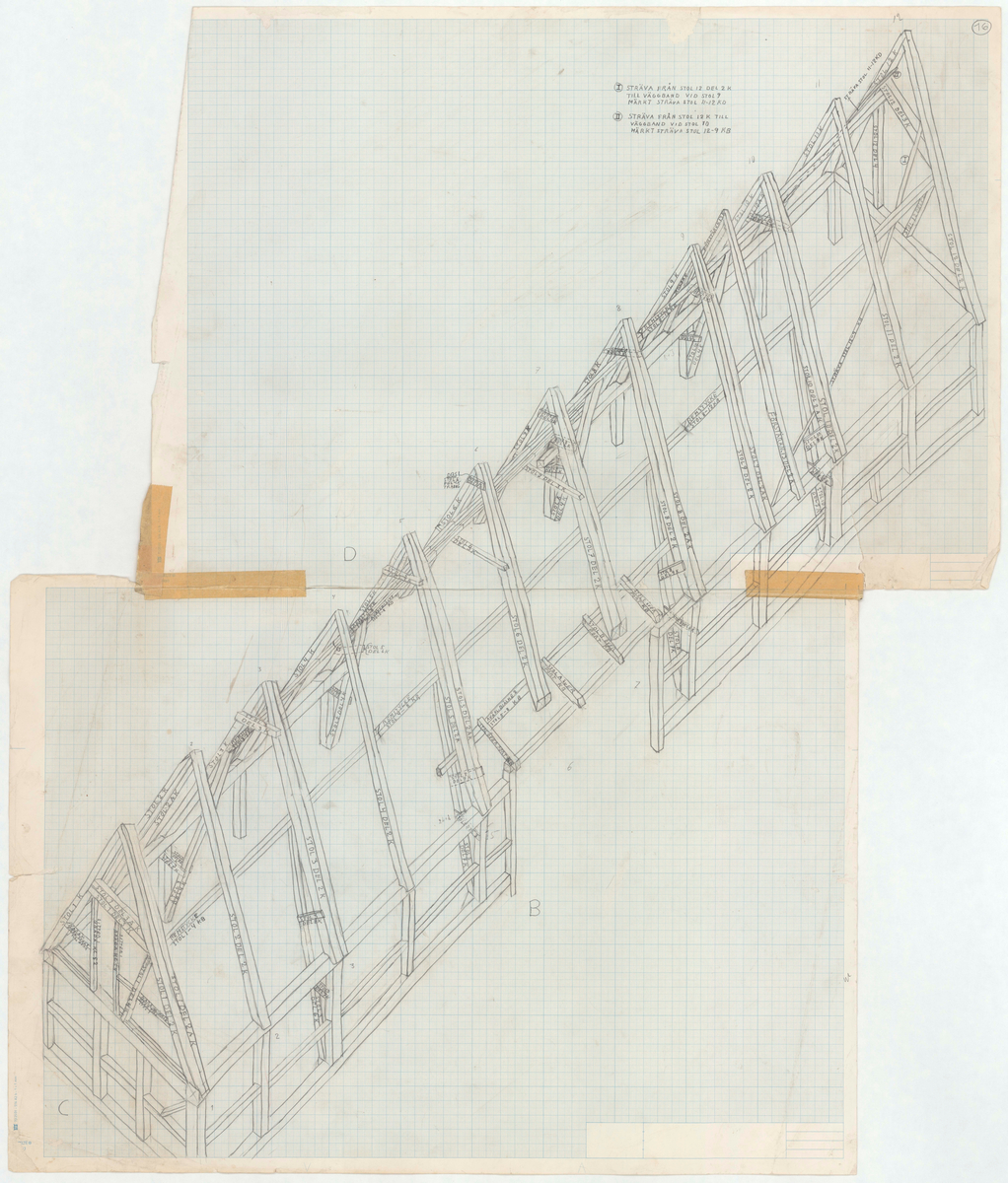 Titel: Skånegården. Västra loglängan. Detaljritning. Mer text finns.