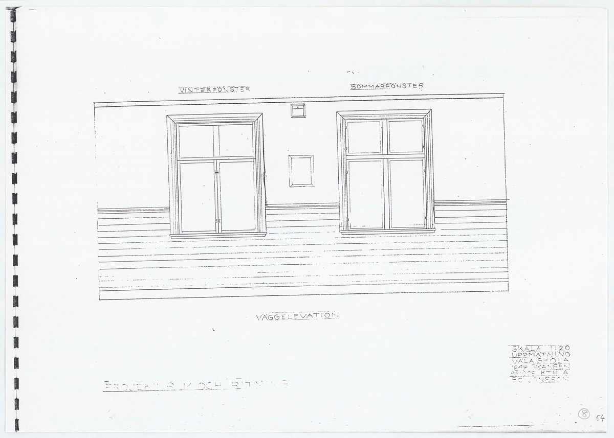 Titel: Väla skola. Sektionsritning. Fönsterelevation. Vinterfönster. Sommarfönster.