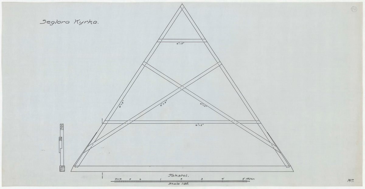 Titel: Seglora kyrka. Profilritning. Takstol.