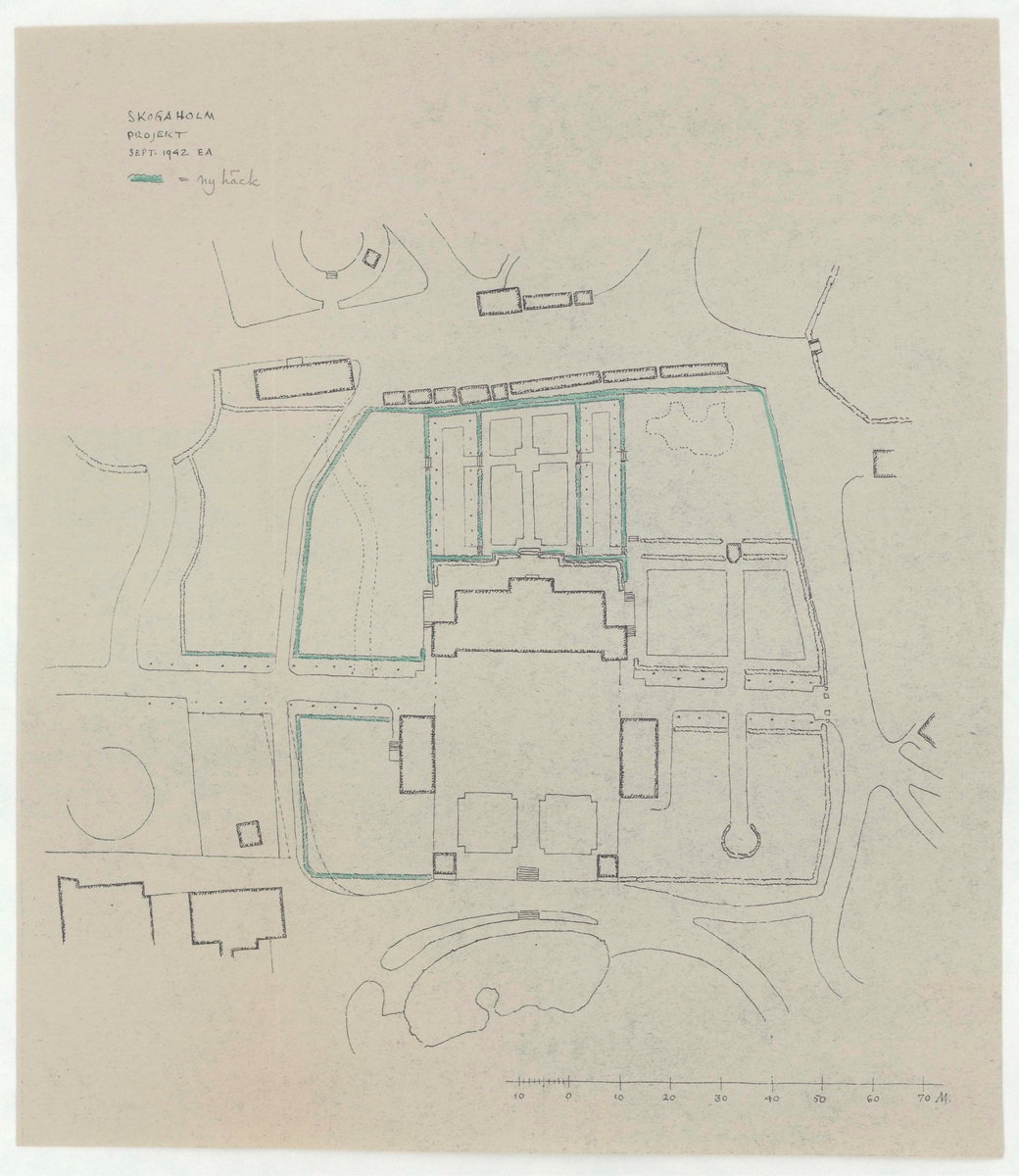 Titel: Skogaholms herrgård. Situationsplan. PROJEKT. Ny häck.