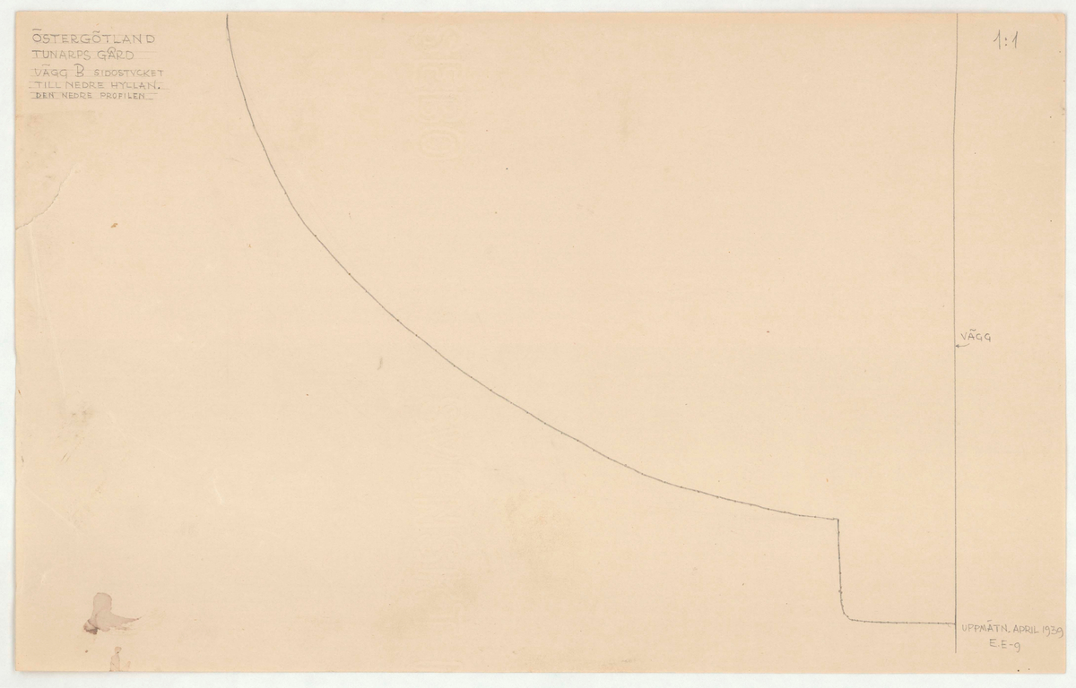 Titel: Skogaholms herrgård. Detaljritning. VÄGG B: SIDOSTYCKET TILL NEDRE HYLLAN DEN NEDRE PROFILEN.