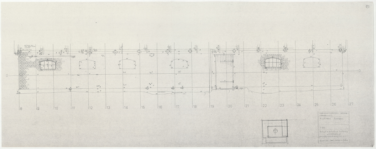 Titel: Skånegården. Stallet. Fasadritning. B-LÄNGAN. Ö FASAD. Skala 1:20